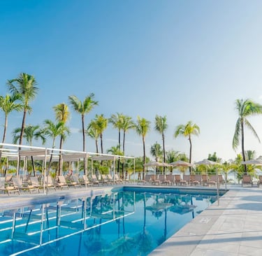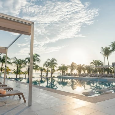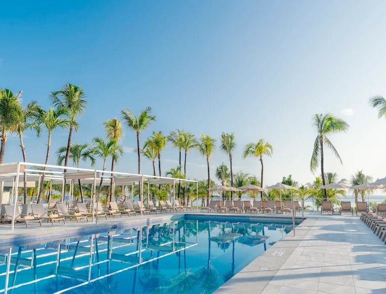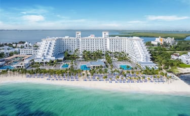 The vibrant Riu Caribe is a 9-story, all-inclusive beachfront resort situated close to Cancun’s renowned shopping and nightlife spots. Fully renovated in the summer of 2023, it welcomes both families and couples. Guests can enjoy a wide variety of activities and entertainment suited for all ages. By day, the lush tropical gardens, sparkling pools, and a stunning expanse of soft white-sand beach invite relaxation and fun.
